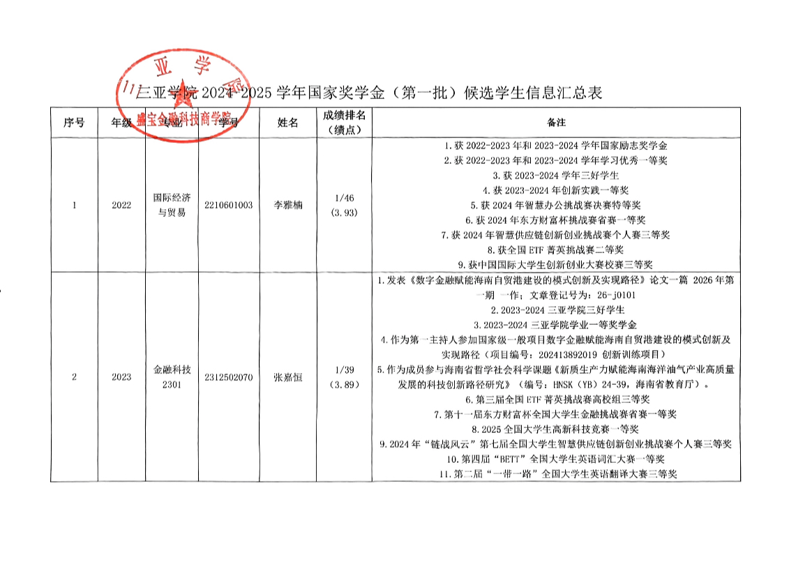 biwn必赢网址2024 -2025学年 国家奖学金 (第 一批)初审结果公示