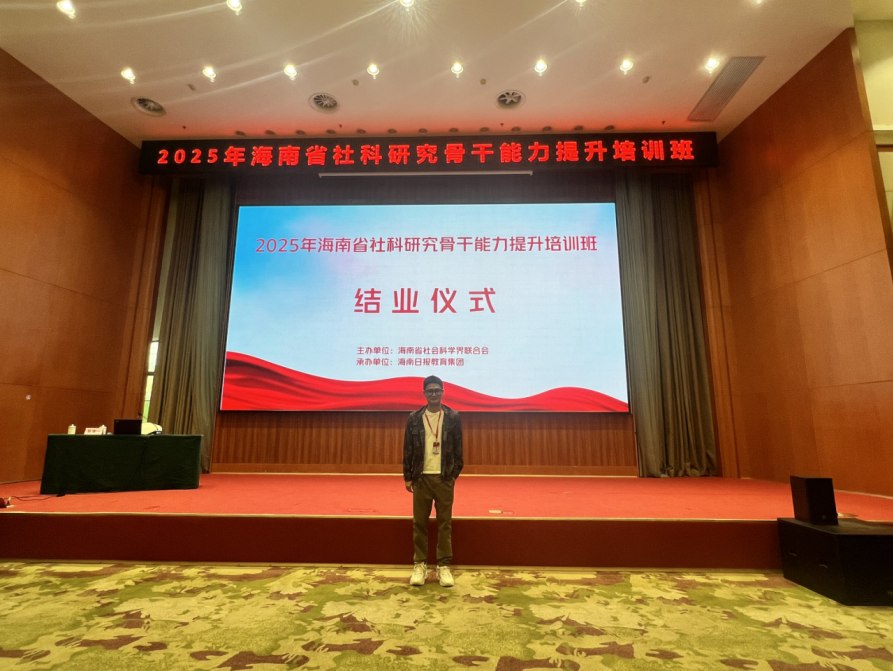 2025年9月26日,2025年海南省社科研究骨干能力提升培训班在澄迈正式开班。本次培训班为期3天,由海南省社科联主办、海南日报文化教育集团有限公司承办,全省80余名高校和科研院所科研管理工作负责人、省社科研究基地骨干、省哲学社会科学重点实验室骨干、省重点智库科研骨干参训。我院教师方翼飞作为省哲学社会科学重点实验室(金融创新与多资产智能交易实验室)代表参加此次培训班。