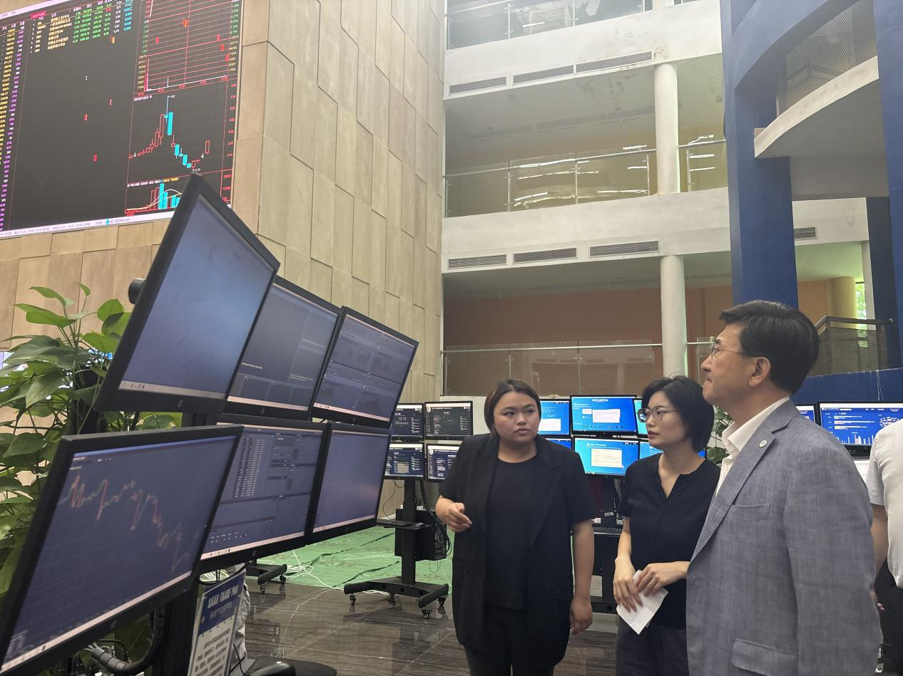 在参观过程中,李昇勋总长对金融教育示范基地的沉浸式教学场景、金融创新与多资产智能交易实验室的前沿设备配置给予高度评价,认为学院将金融理论与科技实践深度融合的教学模式,为培养复合型金融人才提供了优质平台。